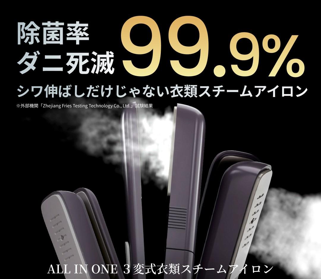 「高温のアイロン」と超微細な「ピュアスチーム」でシワをすばやく伸ばし、除菌・消臭・ダニ殺虫・花粉除去を同時に実現します。3変式のヘッドプレートで、ハンガーにかけたまま使える、新しいヘアアイロン型スチームアイロンです。
