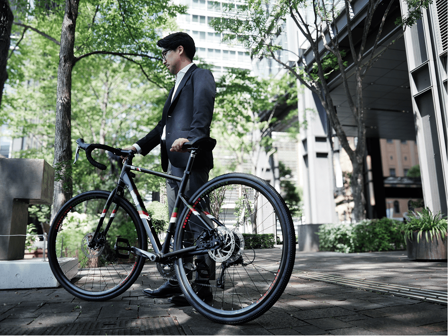 細い路地やカーブなどでも小回りが効くように、ステムの幅は少し短めに調整しました。タイヤ幅は通常のロードバイクよりやや太めの32mmで、荒れた舗装でも楽に走れるグラベルロード仕様です。疾走感と安定感を両立したNodiは、思わず走り出したくなるバランスの良い1台です。