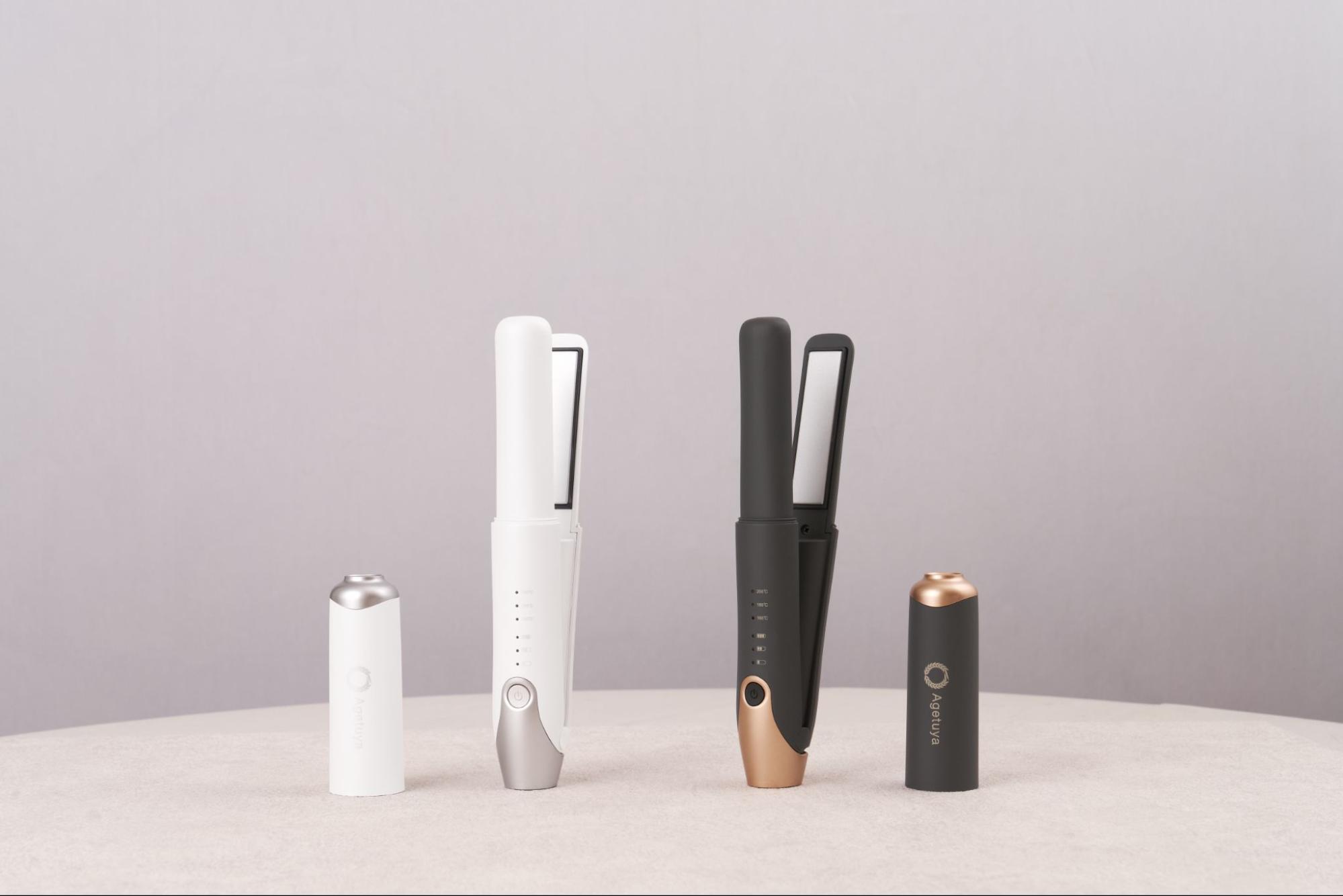 agetuyaの商品ラインナップは、お手軽に髪の毛のお悩みを解決できる幅広い商品展開と豊富なカラーバリエーションが特徴です。中でも、場所や電源に縛られず、簡単にスタイリングできる、携帯に特化した「agetuya コードレスミニヘアアイロンⅡ」は大変人気です。航空輸送の規制に対応した着脱式のリチウムイオン電池を採用し、飛行機内に持ち込みが可能なため、飛行機を降りた瞬間からスタイリングが可能です。