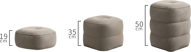 19cm・35cm・50cmの3段階調整が可能です。シーンや好みに合わせて簡単に高さを調整することができるため、いかなる場面でも足の置き場に迷うことがなく、いつでも快適な足元を実現します。